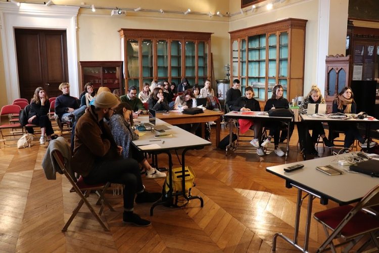 Les étudiants rencontrent : Elise Bonnefille, médiatrice, Nicolas de Larquier, conservateur, responsable du service des publics, Marie Vachin, responsable du service de médiation.