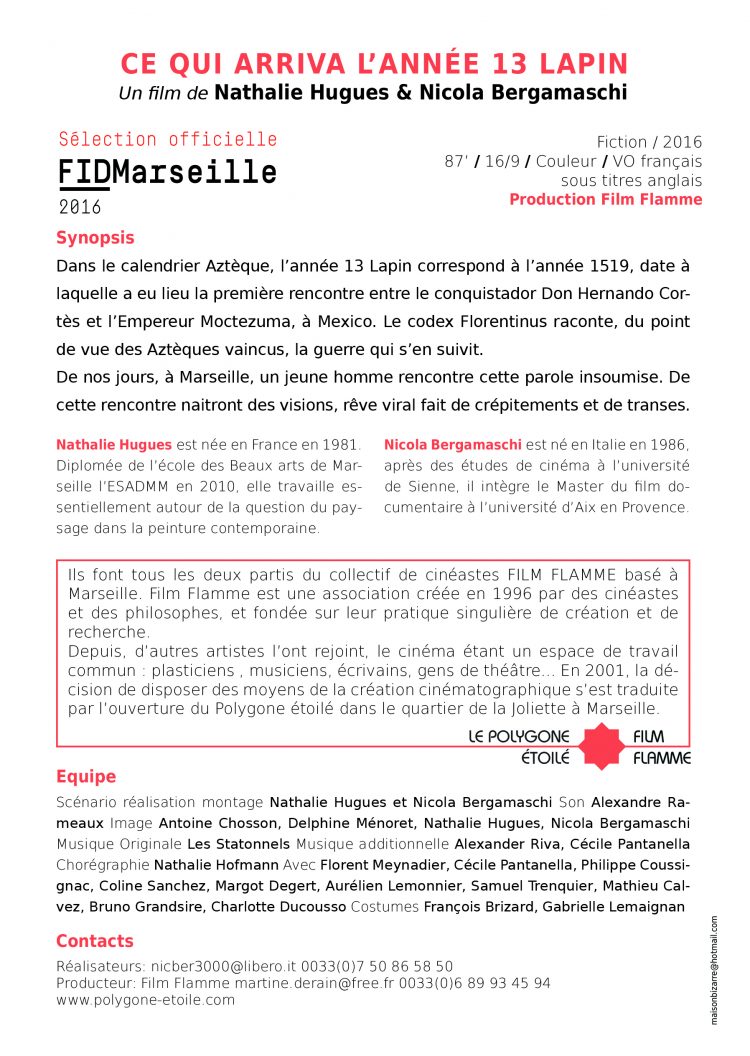 Le film « Ce qui arriva l’année 13 Lapin », co-réalisé par Nathalie Hugues (diplômée de l’ Ecole Supérieure d’Art et de Design Marseille-Méditerranée) est sélectionné en compétition Premier Film au FIDMarseille .