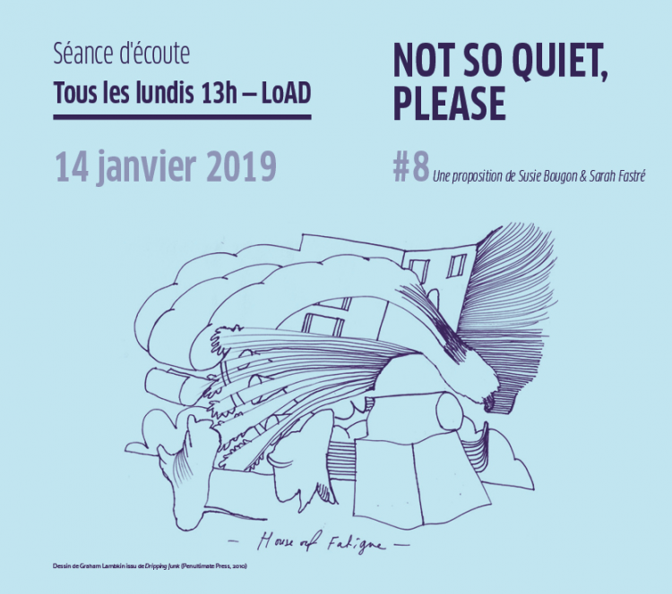 Les choix des pièces pour cette séance peuvent sembler éloignés. Pourtant, la dérive que nous nous offrons s’est comme imposée à nous. Dans un effacement progressif des mots et de la voix, la poésie et la musique s’hybrident sur bande. Le langage et le son se confondent sans cesse. Parfois, l’absence de l’un se fait entendre dans l’autre.
