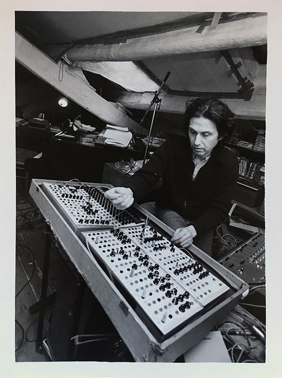 Crédit photo : Alvin Curran dans son studio de la Via Dell’Orso, 28 à Rome par Adriano Mordenti (1980)