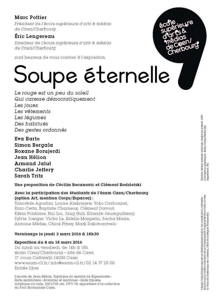 Charlie Jeffery , professeur à l’#ESADMM, participe à l’exposition collective « Soupe Eternelle » à l’ESAM de Caen