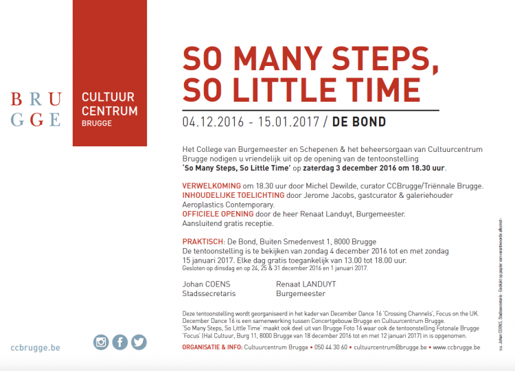 Professeur à l’ ESADMM, Charlie Jeffery participe à » SO MANY STEPS,SO LITTLE TIME » au Cultuur Centrum Brugge