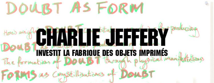 Invité par l’artiste Anne-Émilie Philippe dans le cadre d’une résidence curatoriale nommée «Fonds d’écran, une collection d’images post digital», Charlie Jeffery nous plonge dans son univers le temps d’une résidence de recherches et de productions.
