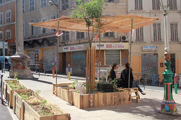 J’ai mené mon projet de diplôme dans cet esprit, à Marseille, dans le quartier Noailles. Un collectif d’habitants de ce quartier s’est approprié les trottoirs de leurs rues et y a planté de la végétation. Pour s’investir dans ce projet de végétalisation de l’espace public, les riverains devaient participer à des assemblées de sensibilisation organisées au sein d’une institution (l’association Les milles pattes). Il était difficile pour certains d’entre eux de franchir les portes de l’association. Le constat de cette situation m’a donné la volonté d’agir pour permettre au plus grand nombre de participer à ce projet.
