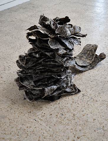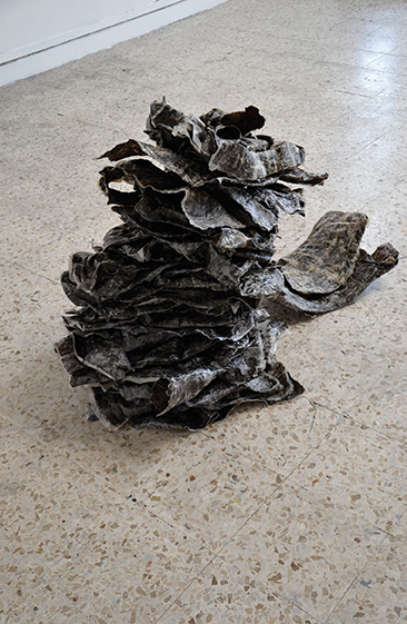 Je pense qu’il ne peut y avoir d’art sans expériences sensibles individuelles. Ce qui m’intéresse a toujours été la substance qui constitue les corps, dont apparaît une structure composée de propriétés physiques propres et reconnaissables. Je développe une affinité à ces matières organiques dans mon travail, que je transpose au rang de matériaux en jouant de leurs propriétés comme moyens plastiques.Travailler avec ces matériaux implique la notion d’expérience, et donc de réaction et d’imprévu.Leurs apparences, leur nature même, me dictent une manière d’agir. J’entretiens avec eux un véritable dialogue dans le faire et la manière. J’attache une grande importance à entendre ce que le matériau me préconise dans son état premier, ses propriétés inaliénables et ses évidences qui induisent des formes d’assemblage, puis mon geste artistique l’emmène vers d’autres possibles et d’autres fins que celles qui lui était assignées. C’est cet espace d’opportunités qui provoque en moi le désir de travailler ces matériaux et qui fait apparaître nos discussions. La mise en œuvre se révèle alors comme l’affirmation de ce qui est instable, presque évanescent et donc vulnérable, me partageant entre inquiétude et attirance.