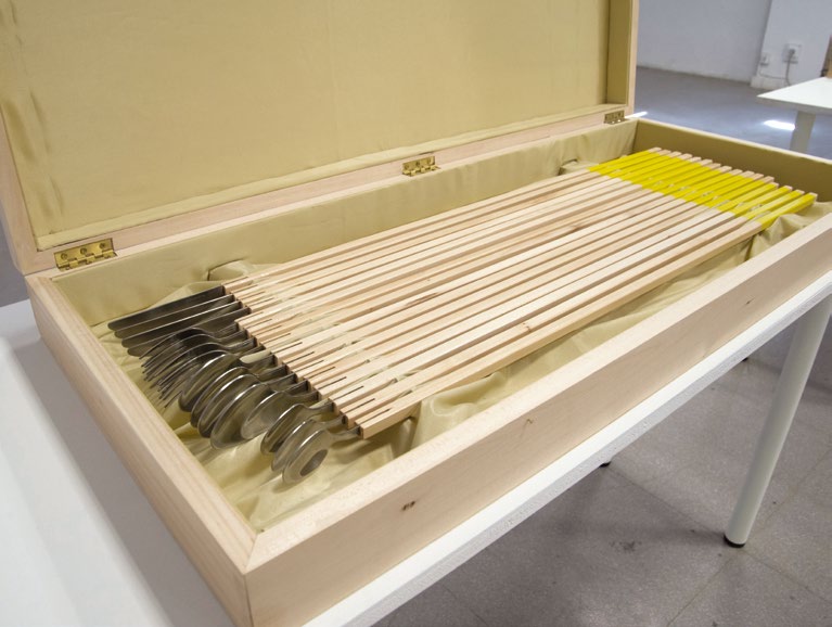 Ce que nous faisons au sein de ces espaces également :nous mangeons de manières différentes, dans des lieux différents… Dire que le milieu culinaire a progressé est indéniable. Mais qu’en est-il de notre attitude, de nos habitudes à table ? Est-ce qu’une évolution équivalente a eu lieu ? Sommes-nous en train de la vivre actuellement ? C’est à travers plusieurs objets-manifestes que je pose la question de l’actualité de notre commensalité et de la perception de celle-ci.