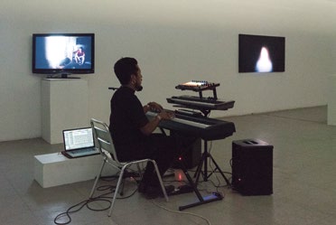 En apparition / disparition, on contemple des formes mouvantes dans un espace où la musique règne. Elle est une indication, émotionnelle, sur l’intention de faire régner dans l’espace le sacré.
