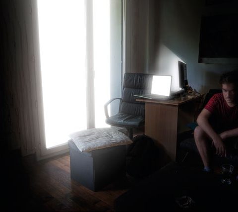 Mon travail se base sur l’interrogation de l’écran qui ne dort jamais, posé là comme une conscience qui veille, créant ainsi une multitude d’univers. De ces fenêtres ouvertes jaillissent des images et des sons, empreintes d’oeuvres « de genre » cinématographiques et littéraires américaines, mais également à des peintures et des écrits du romantisme anglais. La conscience, absorbée par la crise se retrouve dans des endroits où les acteurs sont seuls face au spectateur. Il n’y a devant lui plus que des corps ou des visages, reflétant la lumière de miroirs allumés ou du spectateur lui-même. Ces témoins, en tant que contenus et contenants sont des traces de mes questions, celles sur l’acte de consommation des images de la société contemporaine, du motion-picture qui se suspend, de fascinations, de désir et durapport à soi dans un monde hyperconnecté.