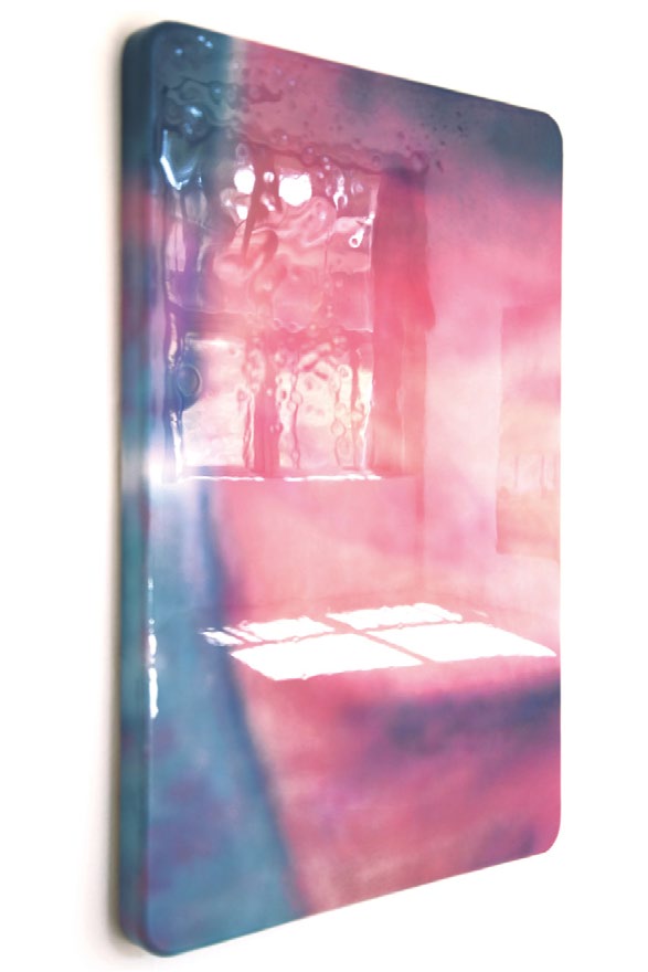 Il s’agit ici de mettre en évidence la matérialité de ces images par des volumes solides et parfois imposants, qui ne peuvent être montrés qu’à un seul moment et un seul endroit à la fois. Ses oeuvres évoquent des objets industriels et usinés. L’utilisation de l’aérographe et de la résine epoxy donne un aspect lisse aux supports, et effacent toute facture et tout geste, à la manière d’un écran ou du papier glacé d’un magazine.