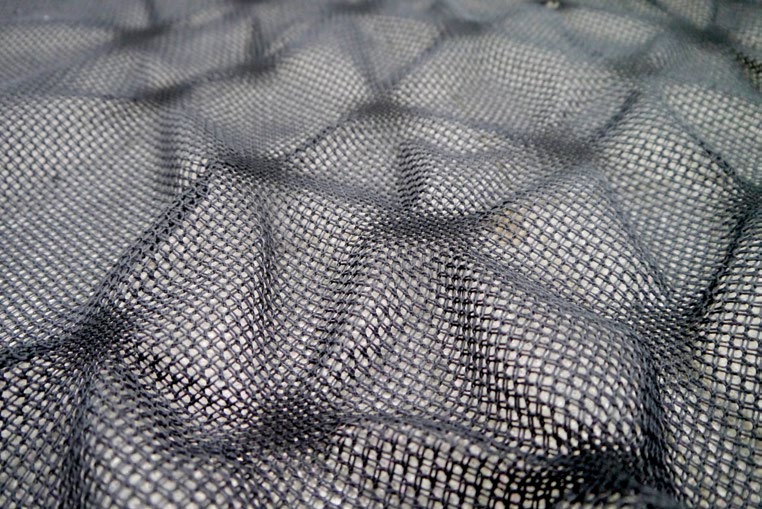 Le textile d’habillage des produits acoustiques de TEXAA se déforme à la chaleur à laquelle je le soumets volontairement. En des points bien définis et dans un motif répété, je compose une dynamique et vient redéfinir l’objet initial avec des jeux d’ombres pour la création de luminaires.