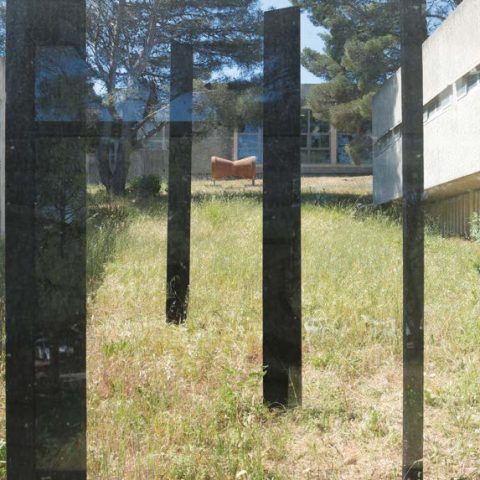 Une résonance rythmique avec l’architecture, débordant des murs comme une dilution géométrique. Une composition intuitive et musicale d’alignements verticaux dans l’espace et le temps.