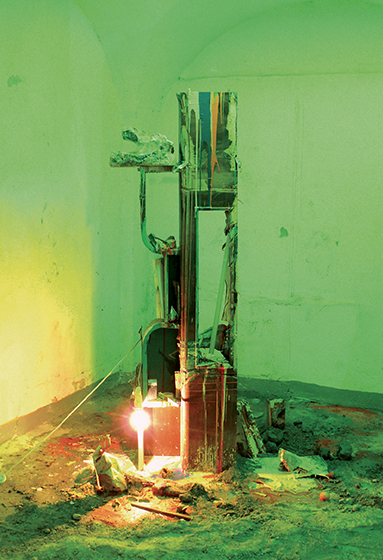Si l’on perçoit l’esprit pictural dans l’ensemble de ce qui nous environne, on ne peut se soumettre à une surface, un cadre, un support, qui ne deviennent que restrictions ; il me faut mettre en scène la substance pour outrepasser et pulvériser l’espace qui nous est infligé. Dans l’impossibilité de se satisfaire d’un résultat, repousser toujours plus, les frontières possibles. Semblable à une obsession pathologique, où l’on en vient à régresser pour ne plus admettre.