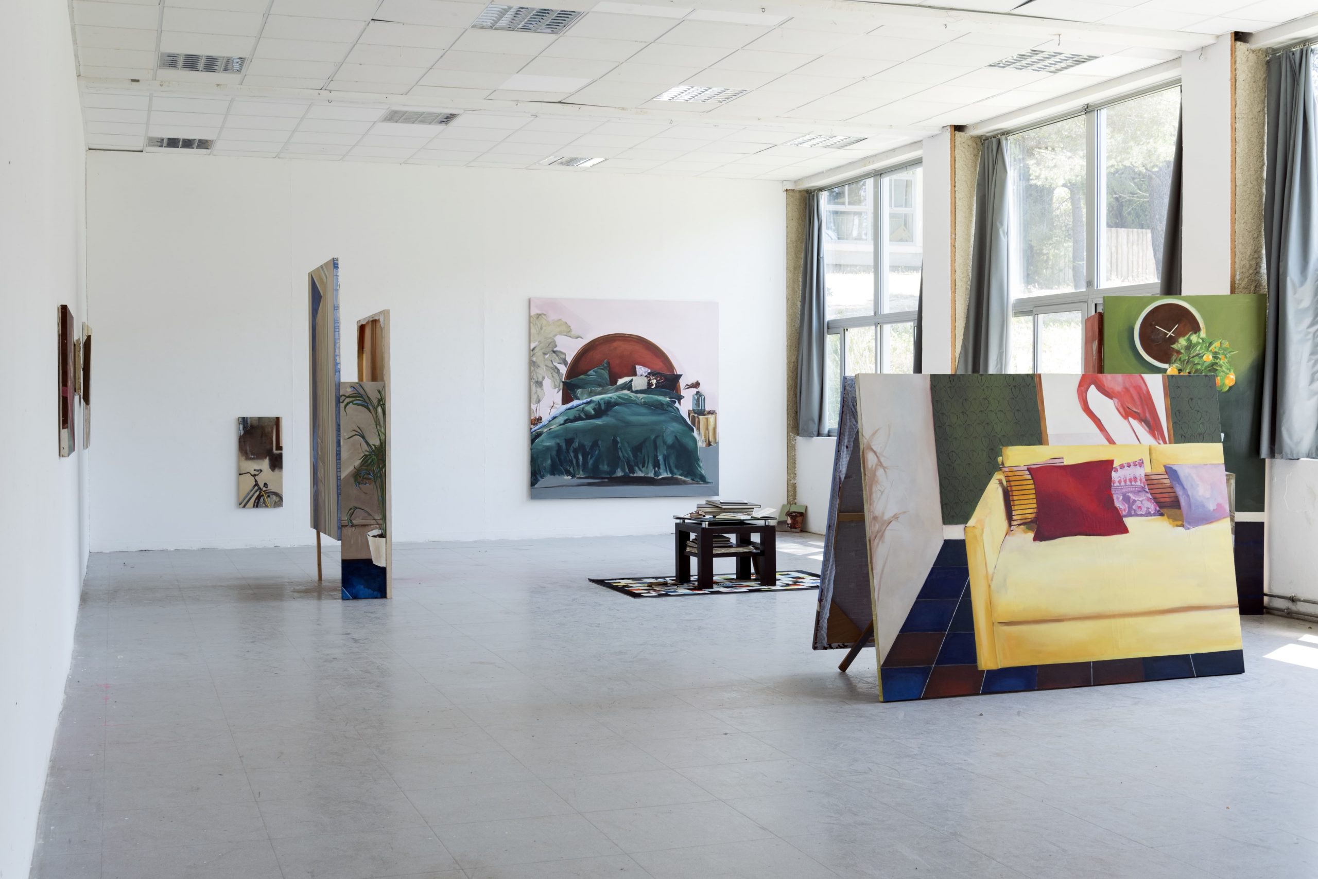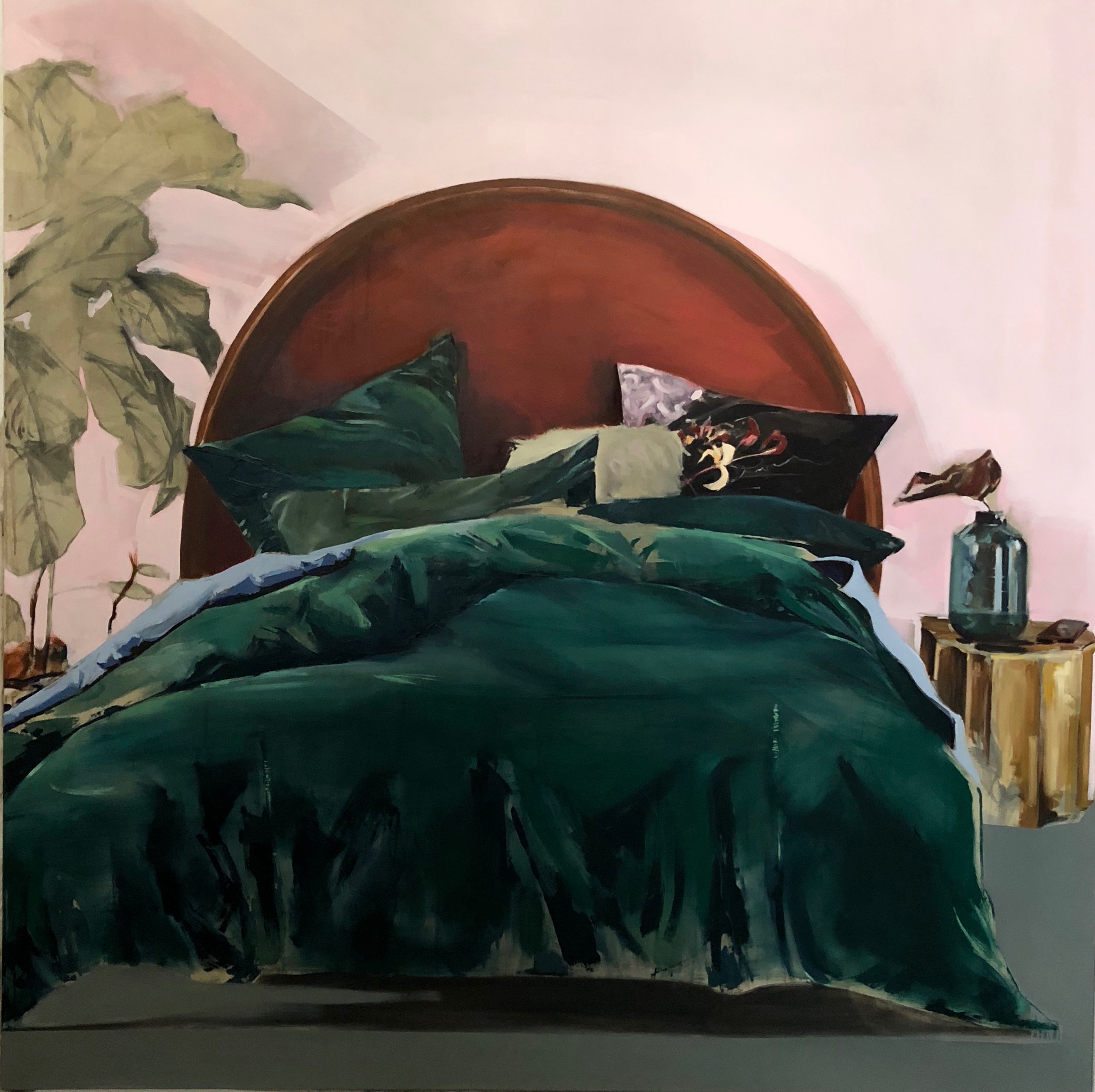 7, 8 heures au petit matin, une chambre. Les stores de la fenêtre sont légèrement entrebâillés. Peu de lumière pénètre. Le lit prend une place centrale. Les draps sont d’un rose pâle et les coussins bleu clair. Dans le lit défait, personne. Des petits plis guident le regard vers un amas plus grand, puis le matelas. Les traces du sommeil ne se sont pas encore dissipées. L’alarme de 6h45 résonne encore. Un miroir cache la penderie qui va bientôt s’ouvrir. Le bruit de l’eau s’est arrêté. Une lampe en bronze sur la table de nuit.
