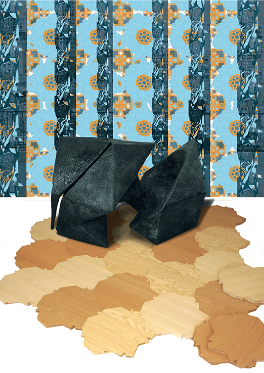 Organes d’organismes constructifs. La structure est une agglomération et les motifs s’additionnent pour donner tout le sens de la profondeur de l’origine. Ces parties séparées, entaillées permettent de mesurer le vide, ce qui s’est passé. Par leur liens, même si elles sont séparées, éclatées, des rapports et des corrélations se recomposent en les situant dans leur propre temps.