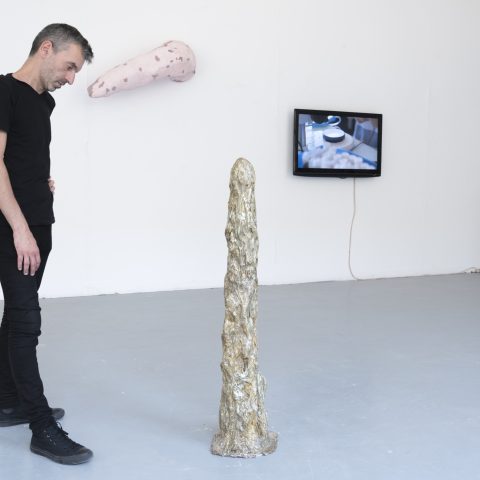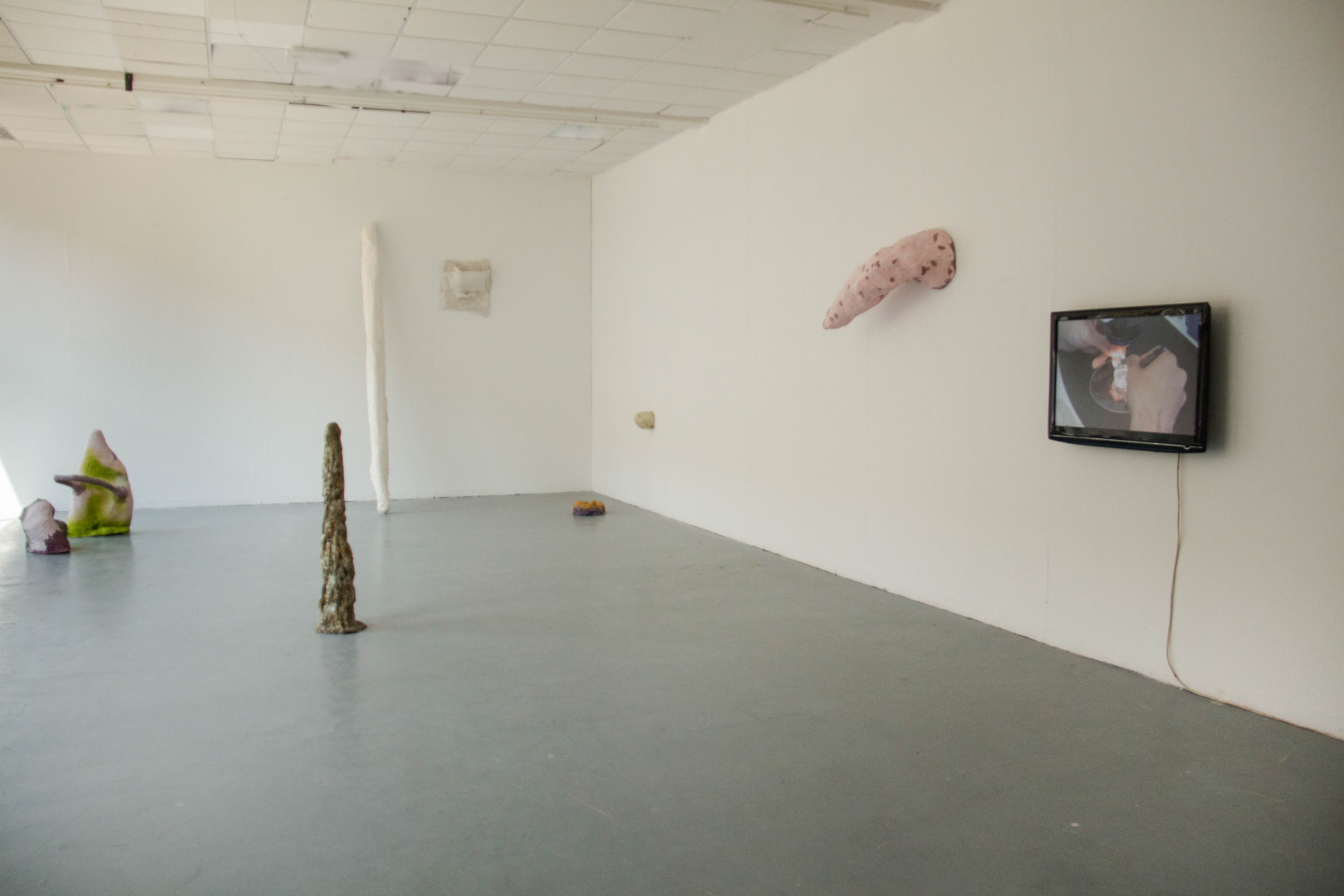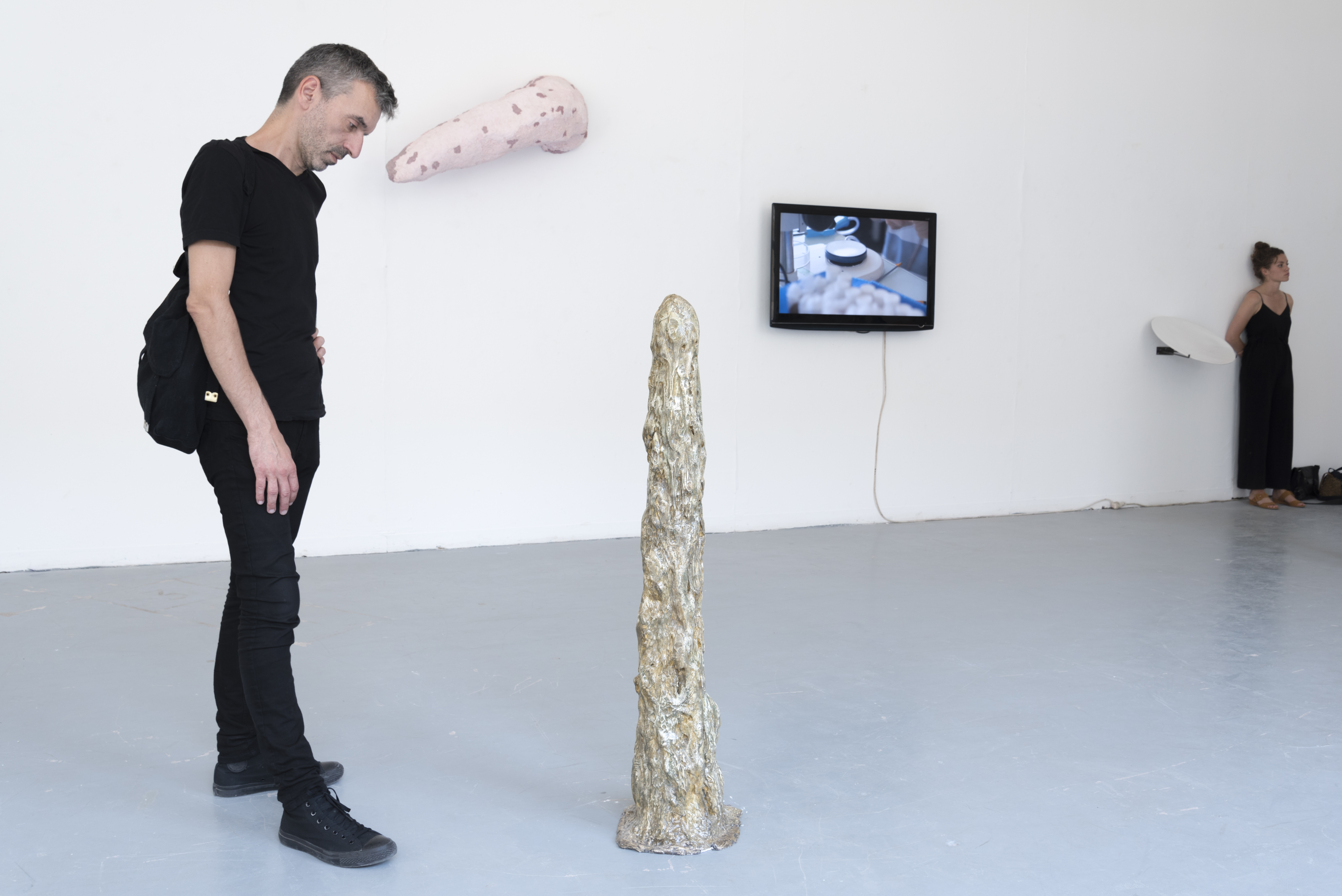 Mes pièces sont installées dans l’espace afin de produire des combinaisons entre les formes à la manière d’un paysage. Chacune des ces formes est inspirée de mondes géologique et organique, comme des excroissances, des dégénérescences et des mutations. Certaines de mes pièces se présentent en petites scénettes qui donnent une personnalité et une identification aux sculptures pour produire une fiction, d’autres élaborent des objets à contempler dont la fonction n’est pas clairement définie.