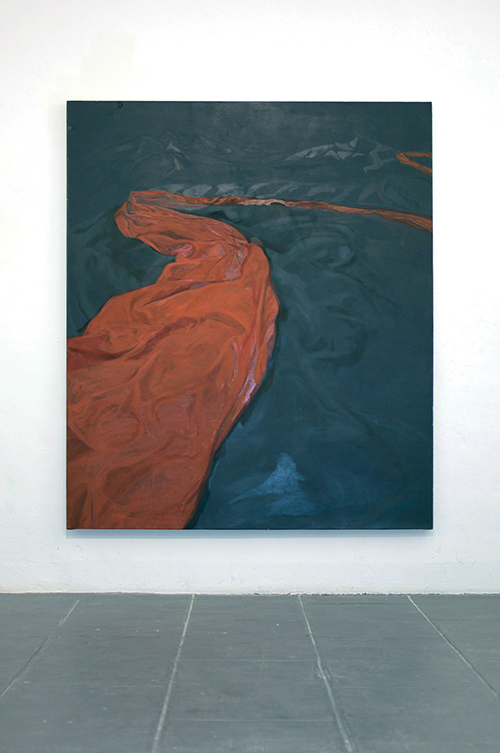 Dans le même temps, je jouis du sentiment du pinceau qui touche la toile. Dans ce travail, le pli deviendra le protagoniste de ma peinture. Je suis curieuse du secret qui existe entre les plis que je peins et la toile plane au dessus du châssis.