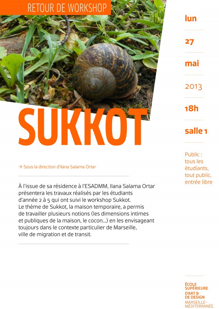 La fête, en rappel, nous demande de renoncer pour un moment à la sécurité de la maison et de reprendre la route. C’est cette complexité de Sukkot, point de jonction entre nomadisme et sédentarité qui est utilisée comme base de ce projet artistique et éducatif.