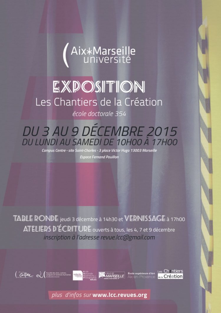 qui aura lieu le jeudi 3 décembre. Nous vous attendons à partir de 14h30 pour une table ronde proposant une analyse à mi-parcours des questionnements qui animent ce nouveau doctorat suivi d’un vernissage à partir de 17h.