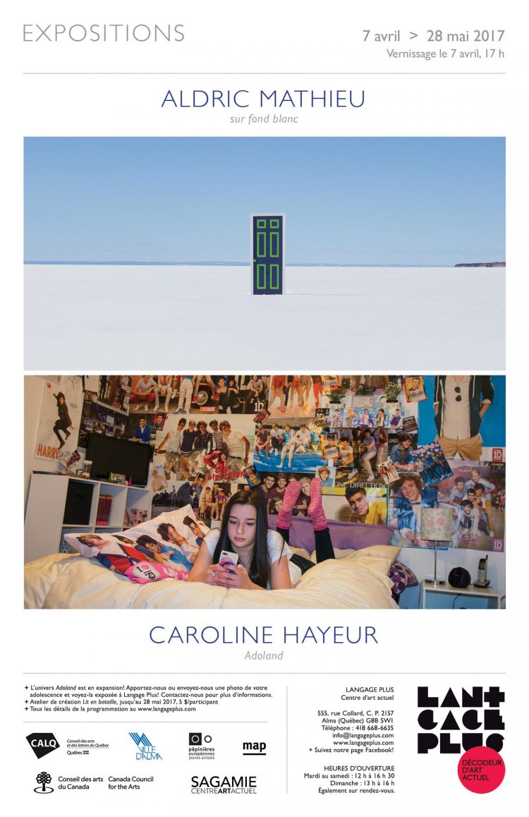 Diplômé de l’ESADMM, Mathieu ALDRIC propose l’exposition Sur fond blanc au centre d’Art Langage Plus à Alma, Québec.