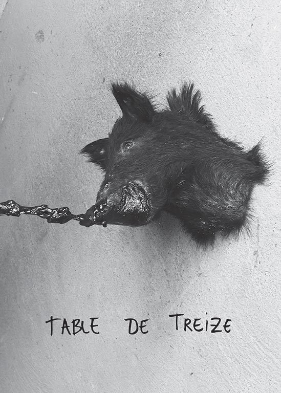 Ce cahier de dessin « Table de treize » rejoue et déjoue tout autant les définitions du dessin que les hiérarchies, affirmant ainsi la centralité de l’acte de dessiner dans des parcours et des pratiques hétérogènes. Car c’est non seulement tous les prétextes, les styles, les sujets et les techniques qui se jouxtent et rentrent en friction sur un pied d’égalité au fil des pages, mais aussi les individus, quels que soient leurs statuts.