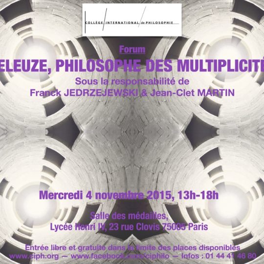 "Deleuze, Philosophie des Multiplicités", le 4 Novembre 2015, de 13 à 18h, Lycée Herny IV - Paris